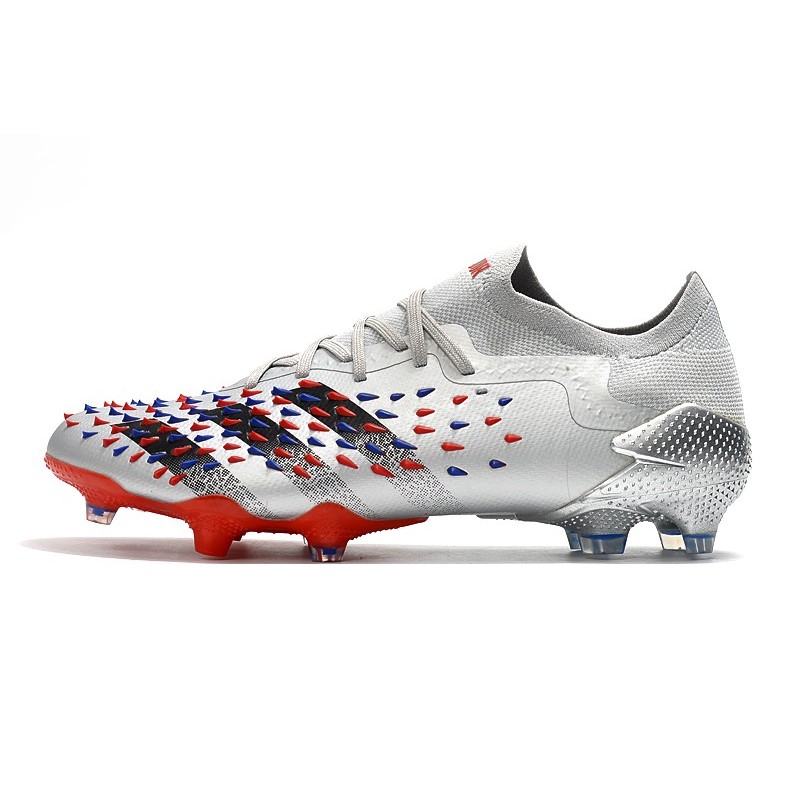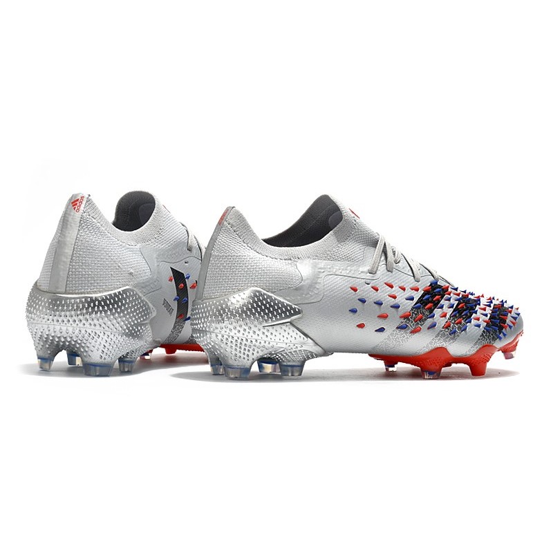 adidas Predator Freak.1 L FG Zapatos de Fútbol Plateado Metálico Negro Escarlata