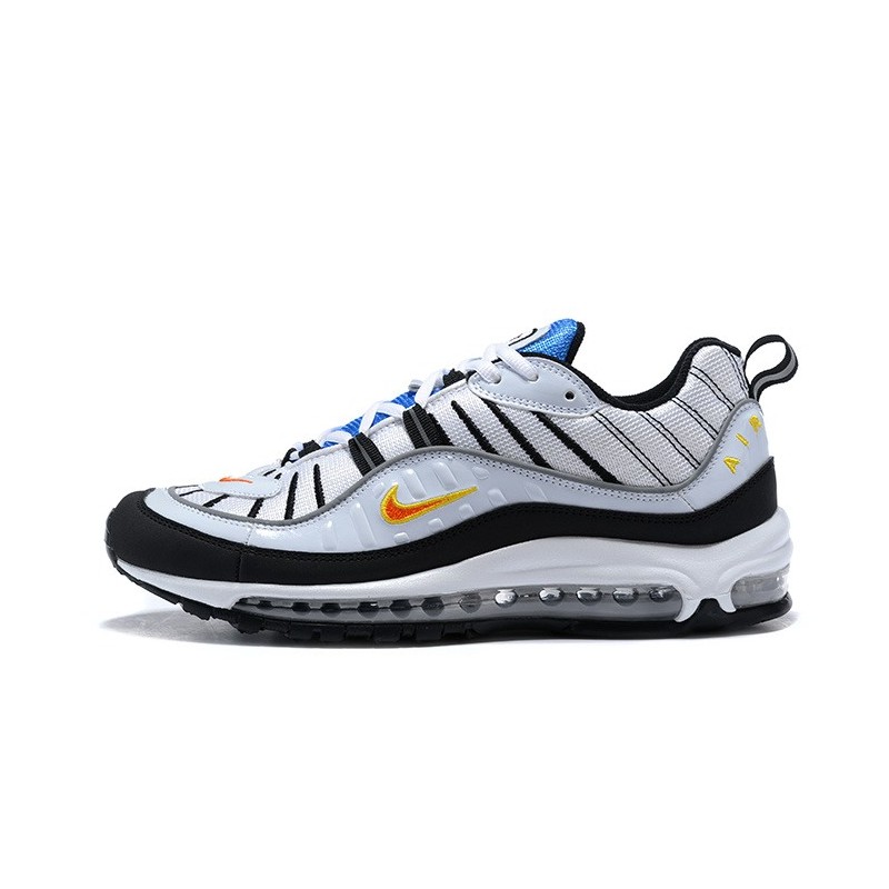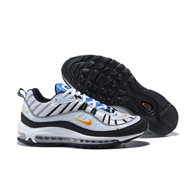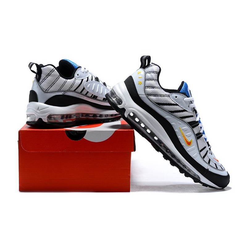 La Nike Air Max 98 parte superior de la piel y la malla se adapta a tu pie cómodamente y la medios de comunicación con la tecnología.